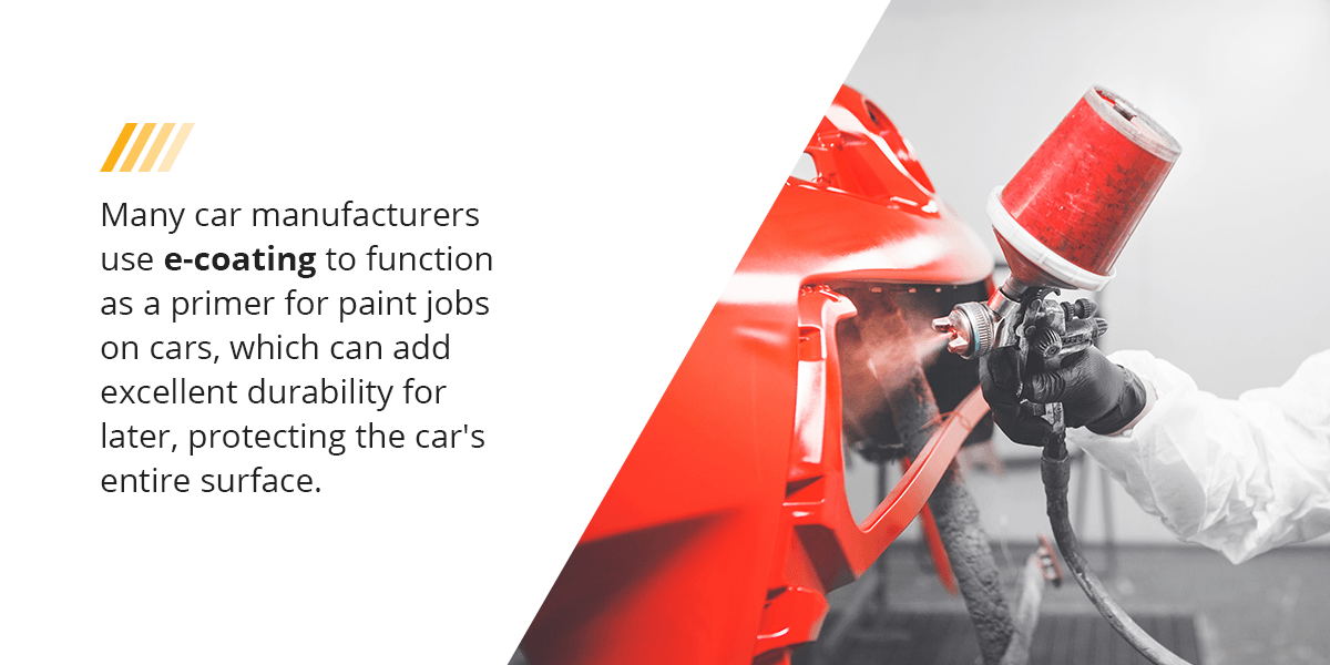 This method is perfect for protecting your products with uneven surfaces or products that have surfaces that are more challenging to reach. Many car manufacturers use e-coating to function as a primer for paint jobs on cars, which can add excellent durability for later, protecting the car’s entire surface.